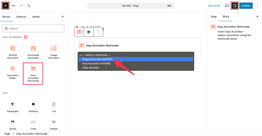 Step 1: Add the Easy Accordion Shortcode Block