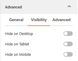 - Device Hiding: Toggle visibility on or off to hide the entire accordion block on Desktop, Tablet, or Mobile viewports for better responsive control.
