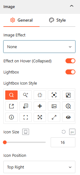 - Icon Size: Set the responsive pixel size of the Lightbox icon.