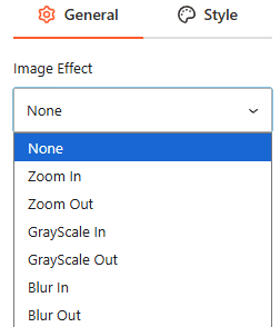 - Image Effect: Select from various visual styles, including Zoom In/Out, GrayScale In/Out, or Blur In/Out.