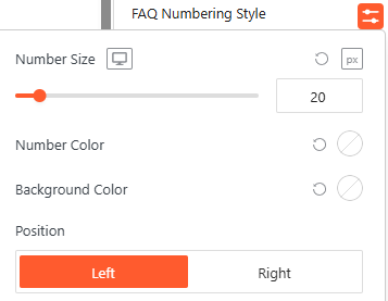 - Style the FAQ Numbering: Set the number size, colors, and choose between Left or Right alignment.