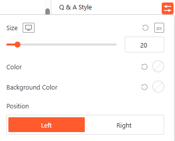 - Q & A Style (Q & A Template): Customize the size, colors, and toggle the position to Left or Right.