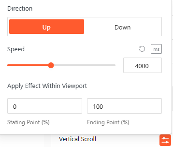 - Vertical Scroll: Use this to set how the animation will appear. Set the Direction to (Up/Down), speed, and apply the effect within the viewport.