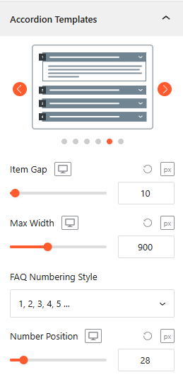 - Template-Specific Styles: The following settings appear dynamically based on your chosen accordion template:
