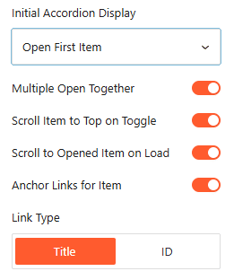 - Link Type: Generate anchor links based on the Title text or a unique ID.