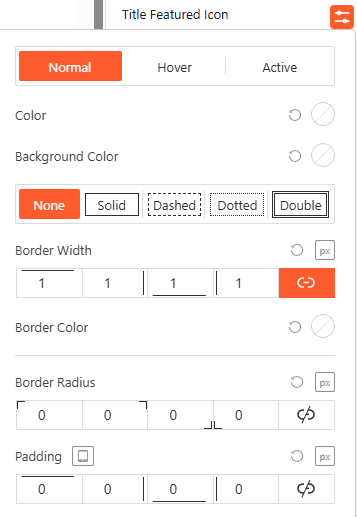 Use this panel to adjust the featured icon’s color, border width, and padding across different interaction states to create a distinct visual anchor.