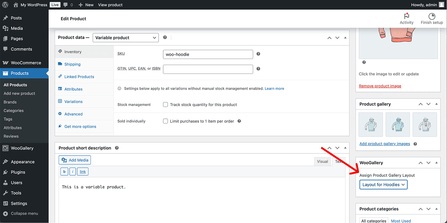 With the WooGallery plugin, you can easily create different gallery layouts and assign them to specific products or categories to enhance the shopping experience and instantly boost your sales. Follow the steps below to assign the layouts: