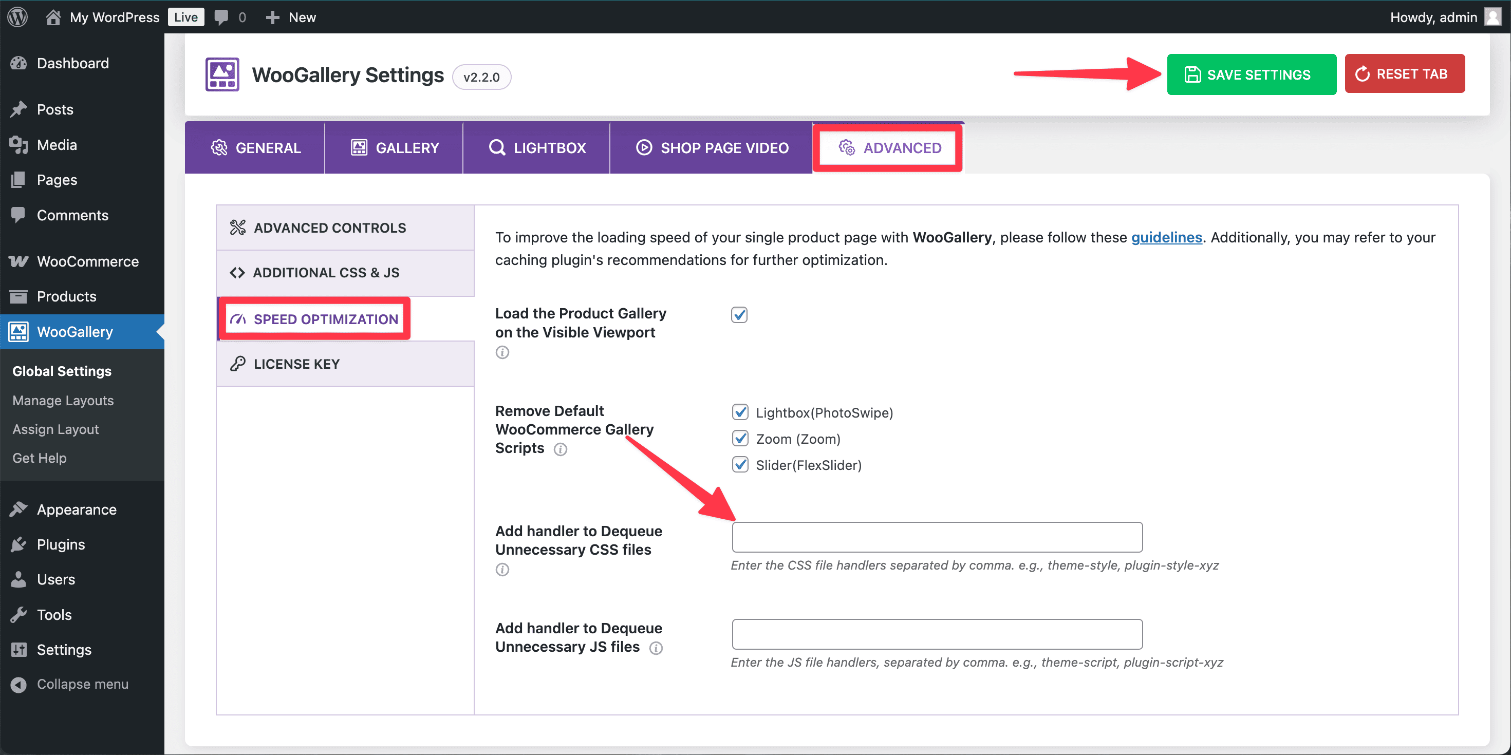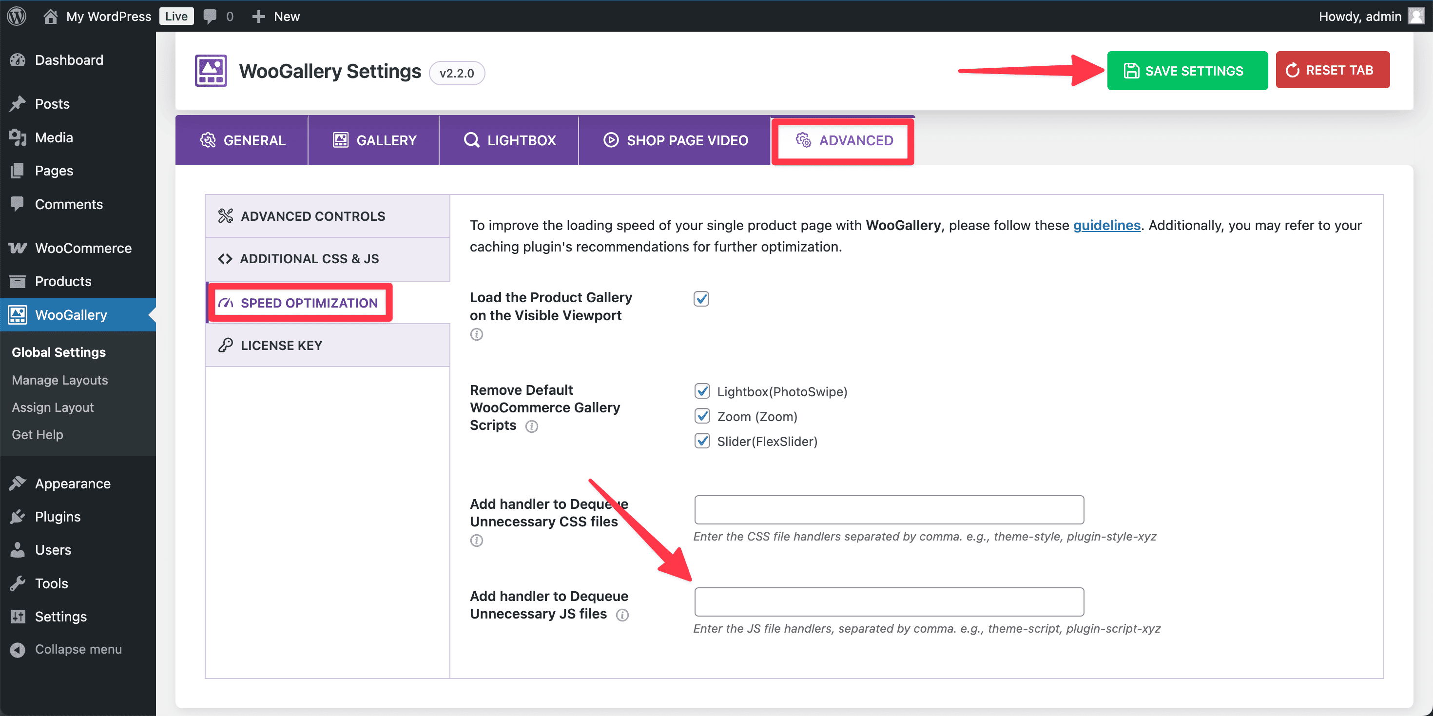 - Dequeue Unnecessary JavaScript Files: Add a handler to remove redundant JavaScript files.
