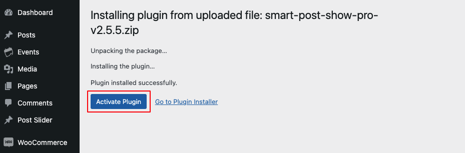 After the download, you’ll find the files in a zip folder on your computer named smart-post-show-pro.zip. Please follow the steps below to install the “Smart Post Show Pro” version.
