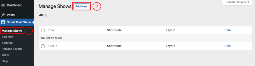 (1) Click on the Smart Post Show > Manage Shows menu.