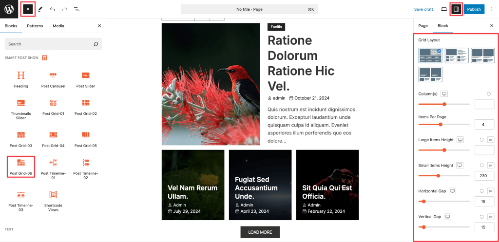 The Post Grid Block comes with numerous customization options, giving you full control over the appearance and behavior of your grid layout.
