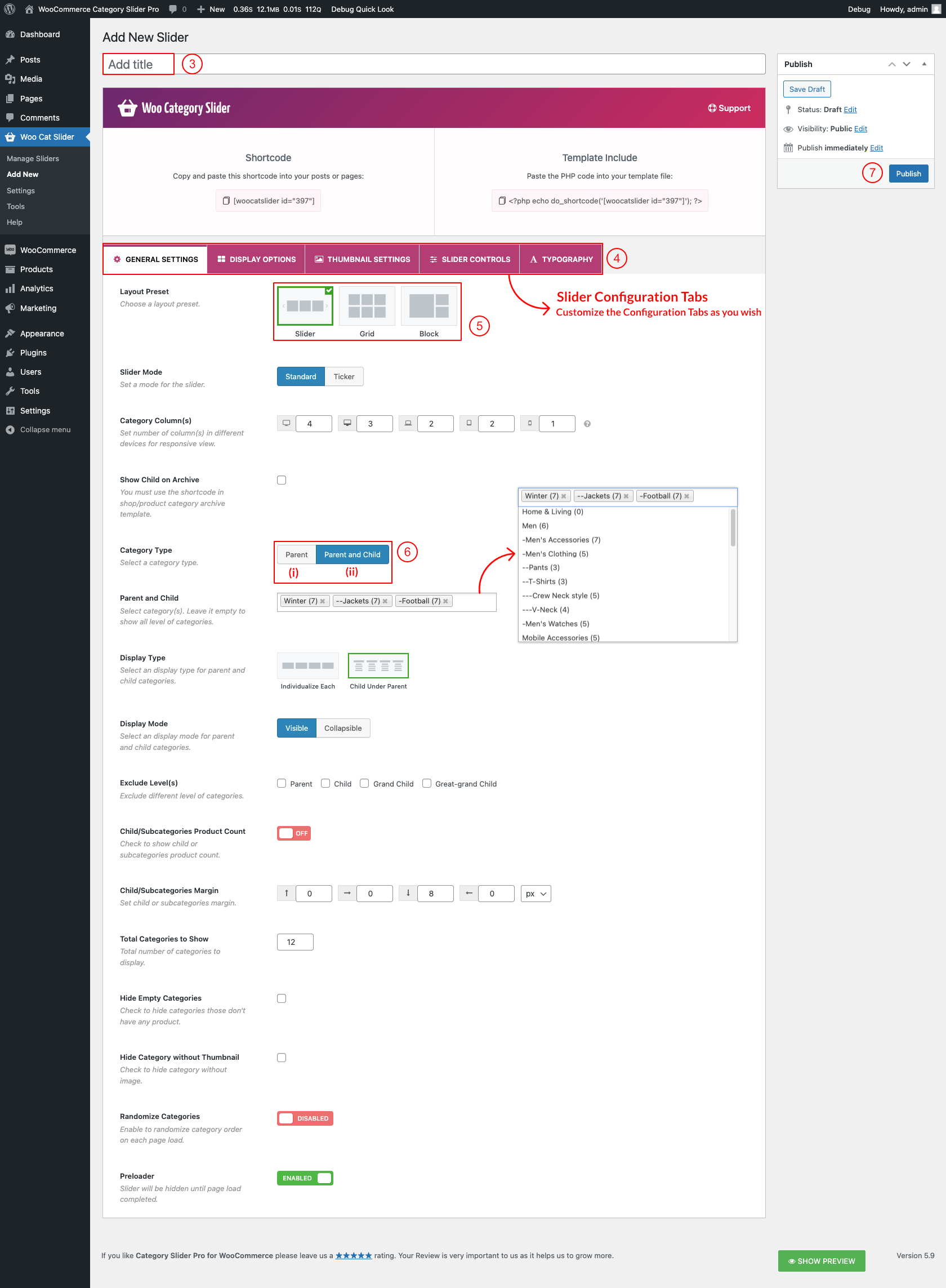 (4) Customize Slider Configuration Tabs as per your needs or wish.