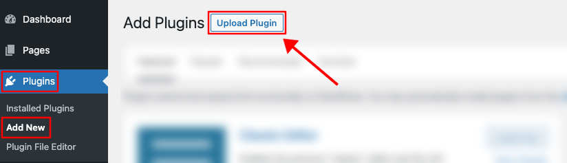 2. Navigate to Plugins → Add New → Upload Plugin.