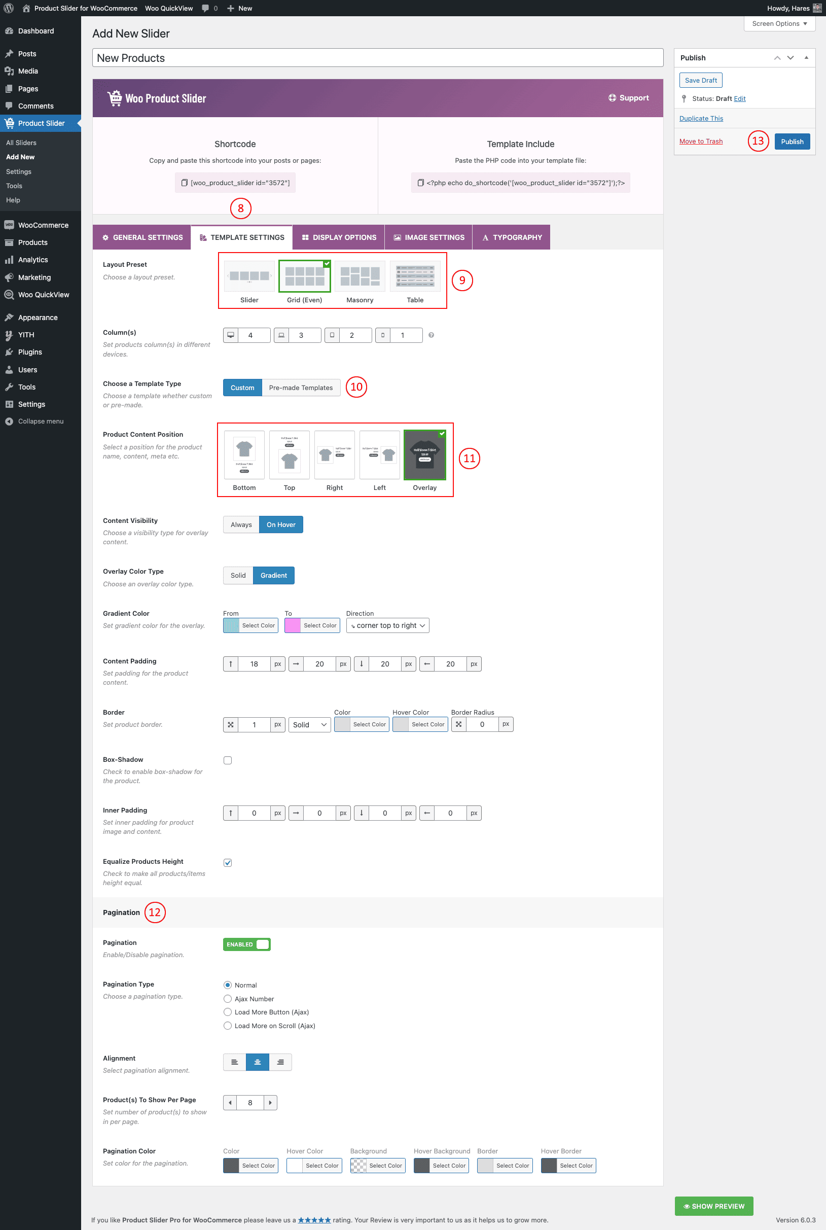 (12) Pagination → Enable/Disable pagination as you want (Pagination is showing in this tab as the Gird layout is selected).