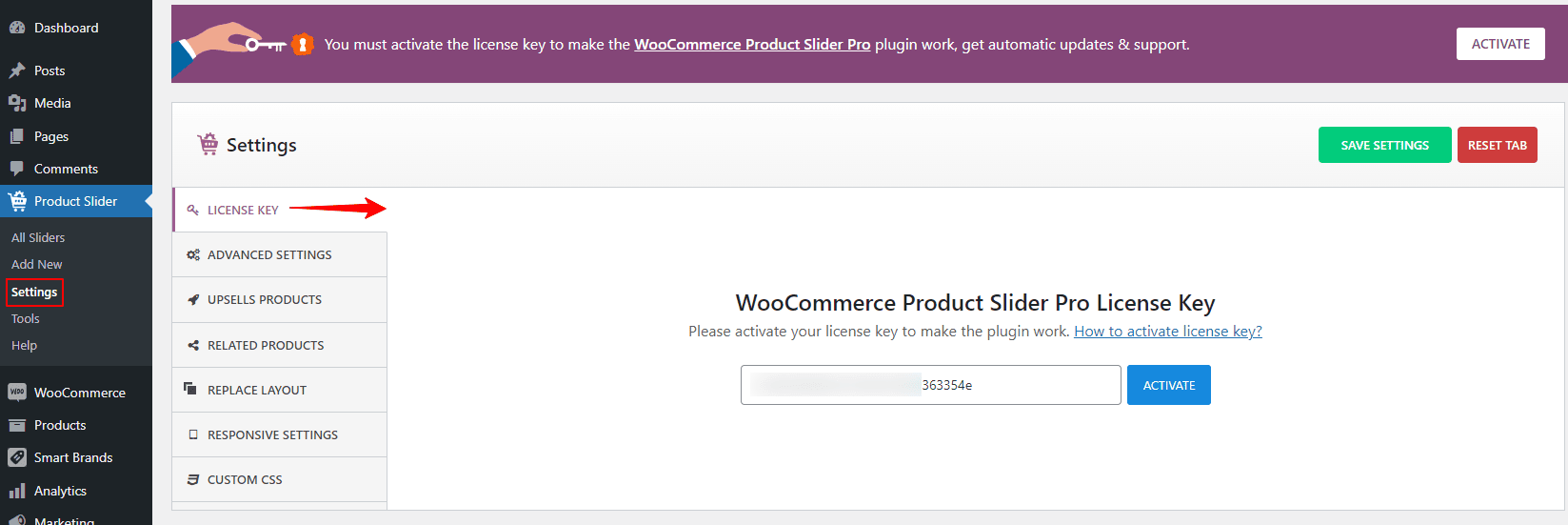 You must activate the license key to make the WooCommerce Product Slider Pro plugin work, get automatic updates & support. After your purchase, a receipt email will be sent to your inbox (of the email ID you used to purchase). That email includes the following things:
