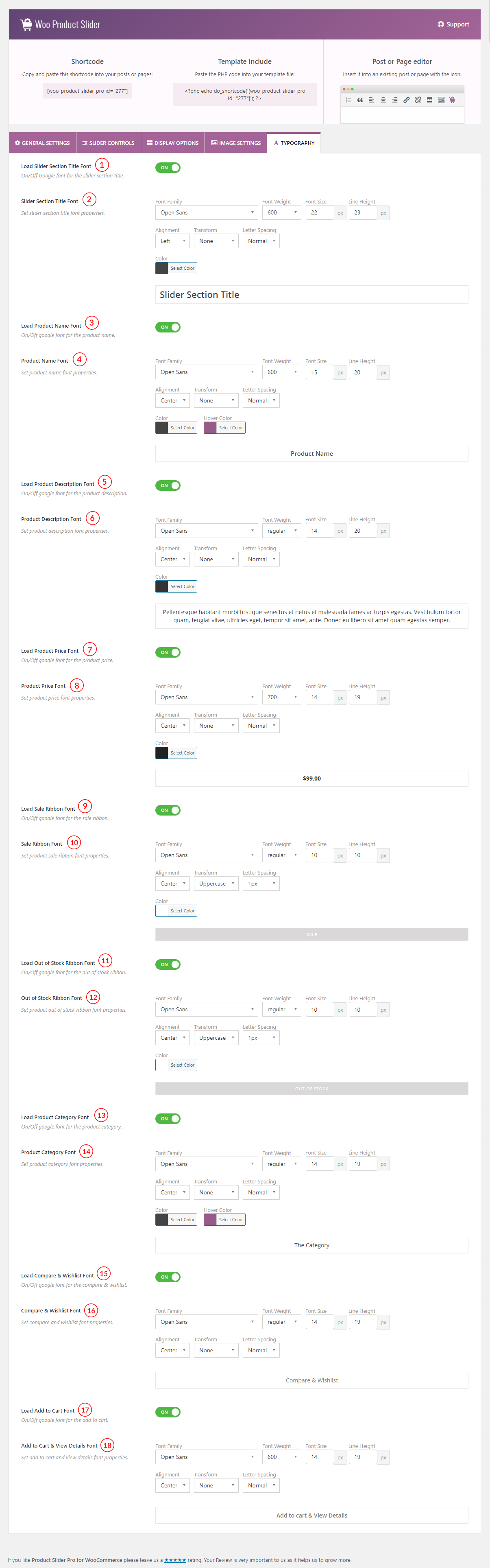 (15) Load Compare & Wishlist Font: Same as Number (1).