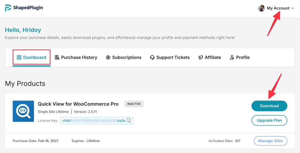 • Download the Pro version from My Account→ Dashboard→ Downloads.