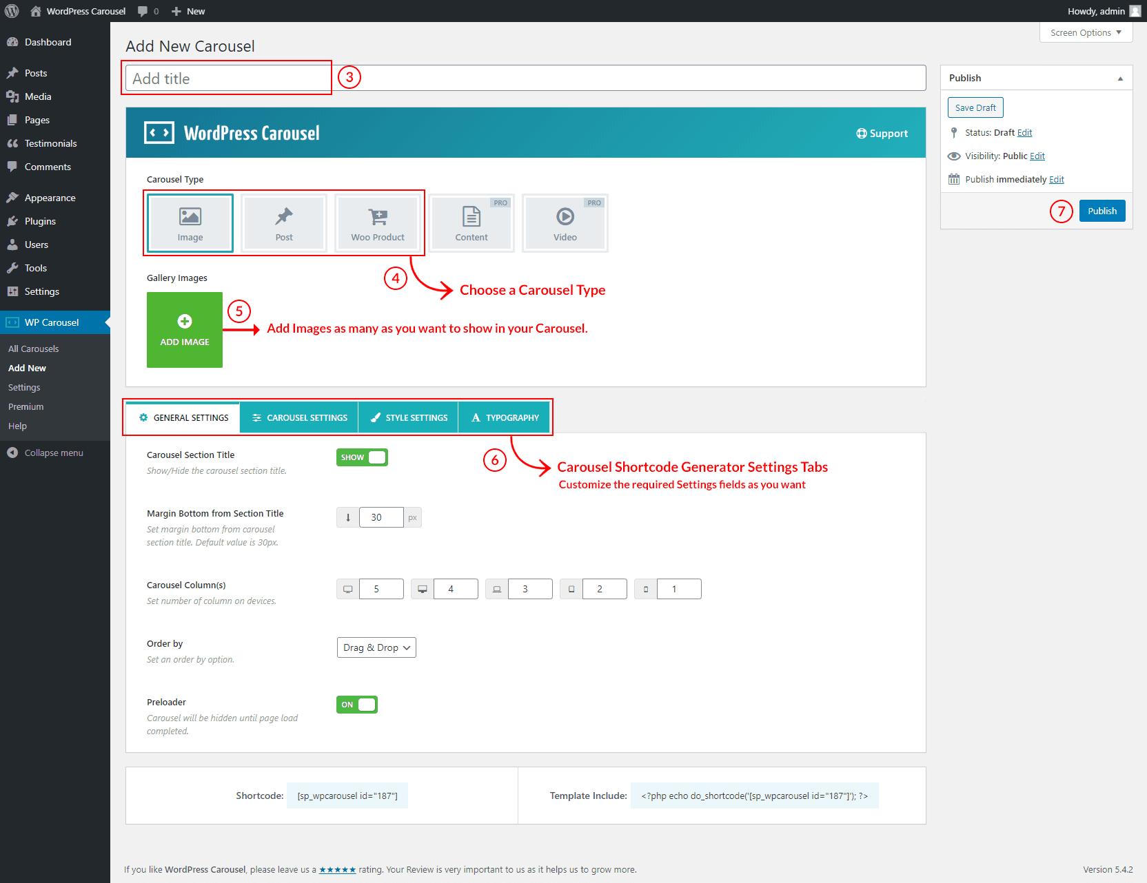 STEP 1: GENERATE CAROUSEL SHORTCODE