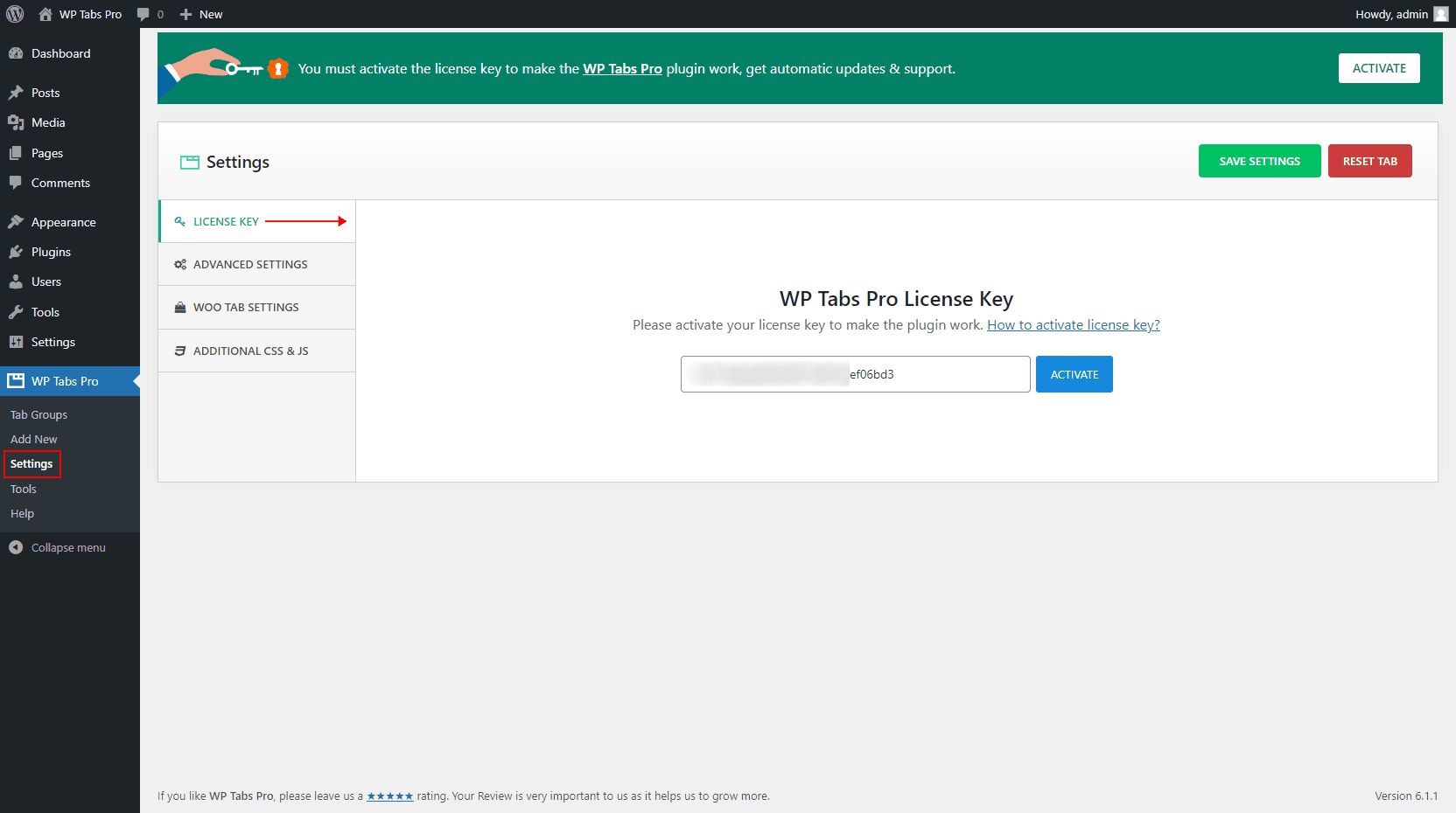 You must activate the license key to make the WP Tabs Pro plugin work, get automatic updates & support. After your purchase, a receipt email will be sent to your inbox (of the email ID you used to purchase). That email includes the following things: